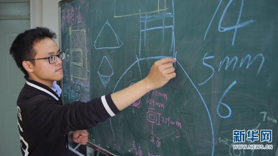 實(shí)訓(xùn)室里,一名學(xué)生在黑板上標(biāo)注和計(jì)算首飾的尺寸。(新華網(wǎng) 周亞平/攝 念新洪、楊沛林/文)