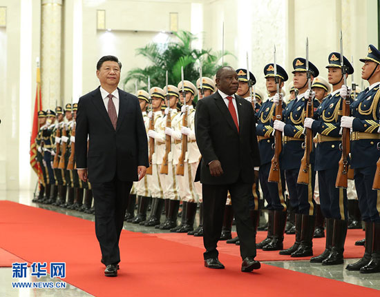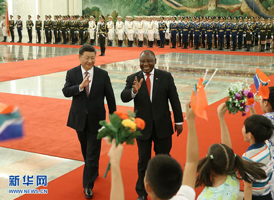 拉馬福薩表示,南中關(guān)系是建立在相互尊重、平等互利基礎(chǔ)上的,歷久彌新,具有戰(zhàn)略性,雙方保持高層交往對深化互信十分重要。習(xí)近平主席今年7月對南非進(jìn)行了十分成功的國事訪問。我也很高興以南非總統(tǒng)身份首次訪華,繼續(xù)我們之間的戰(zhàn)略溝通。南方愿借鑒中方在執(zhí)政黨建設(shè)、企業(yè)管理等方面的有益經(jīng)驗(yàn),積極參與“一帶一路”合作。剛才我在歡迎儀式上看到那些可愛的孩子,使我感到我們必須加強(qiáng)人民之間的交往,讓南中友誼代代相傳。南中兩國在國際事務(wù)中立場相近,當(dāng)前形勢下,雙方要共同致力于維護(hù)多邊主義和國際貿(mào)易體制,維護(hù)新興市場國家和發(fā)展中國家共同利益。南非過去6年擔(dān)任中非合作論壇非方主席,同中方一道推進(jìn)論壇各項(xiàng)工作。我本人期待著同習(xí)主席共同主持即將召開的北京峰會(huì),繼續(xù)努力推動(dòng)非中關(guān)系深入發(fā)展。