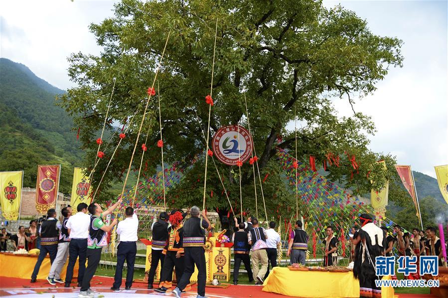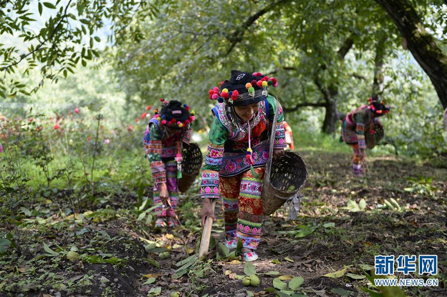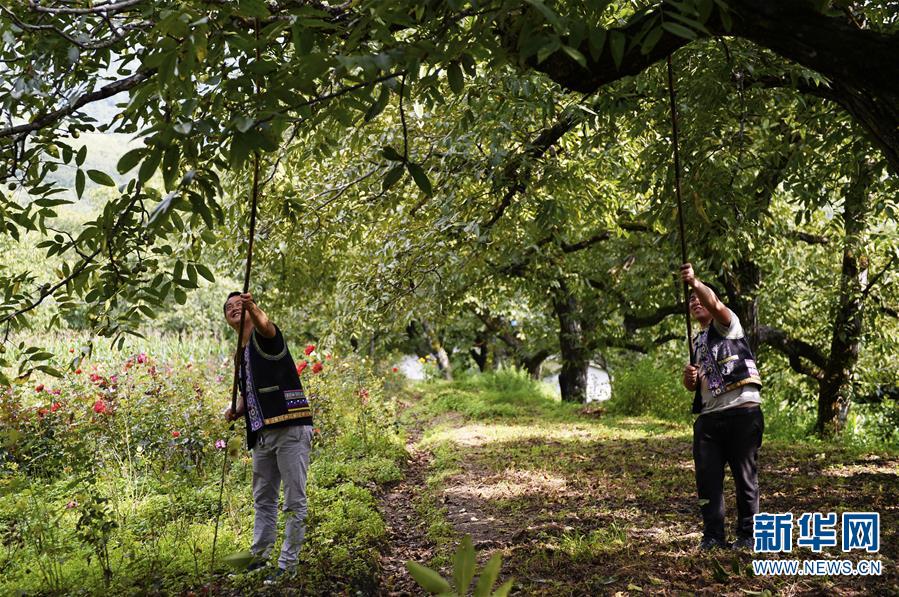 9月1日,人們在核桃節(jié)上參加核桃采摘開竿儀式。 當日,2018云南·大理漾濞核桃節(jié)采摘開竿儀式在云南省漾濞彝族自治縣舉行。 新華社發(fā)(謝子藝攝)