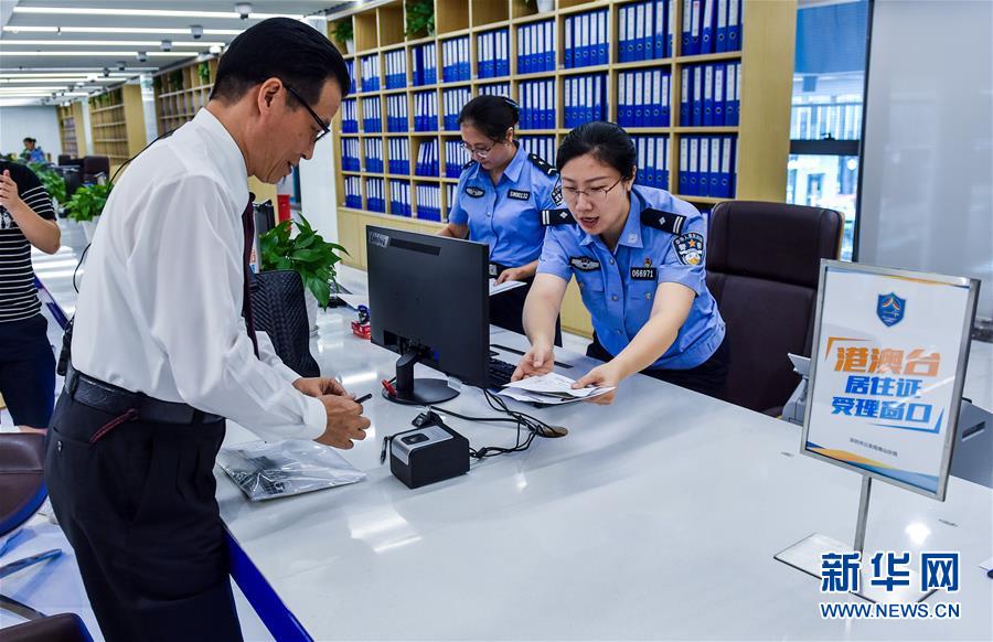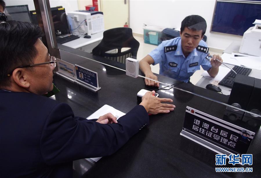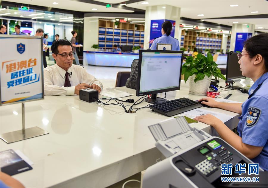 9月1日,在深圳市公安局南山分局深圳灣服務(wù)中心,民警為深圳臺商協(xié)會會長陳忠和辦理居住證。 《港澳臺居民居住證申領(lǐng)發(fā)放辦法》9月1日起正式實(shí)施,各地公安機(jī)關(guān)設(shè)立的6000多個受理點(diǎn)開始受理港澳臺居民提交的申請。新華社記者 毛思倩 攝