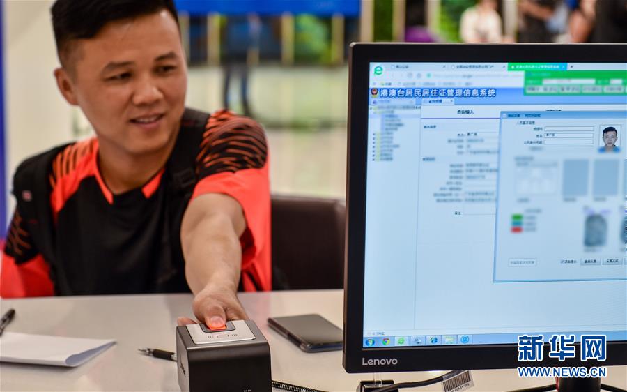 9月1日,香港同胞黃廣強(qiáng)在深圳市公安局南山分局深圳灣服務(wù)中心辦理港澳臺居民居住證手續(xù)時錄入指紋。 《港澳臺居民居住證申領(lǐng)發(fā)放辦法》9月1日起正式實(shí)施,各地公安機(jī)關(guān)設(shè)立的6000多個受理點(diǎn)開始受理港澳臺居民提交的申請。新華社記者 毛思倩 攝