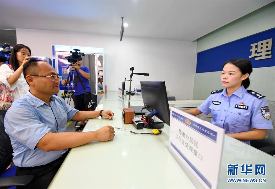 9月1日,臺胞王廉瑩在福建廈門市公安局湖里分局金山派出所綜合服務(wù)大廳辦理港澳臺居民居住證手續(xù)。 《港澳臺居民居住證申領(lǐng)發(fā)放辦法》9月1日起正式實(shí)施,各地公安機(jī)關(guān)設(shè)立的6000多個受理點(diǎn)開始受理港澳臺居民提交的申請。 新華社記者 付敏 攝