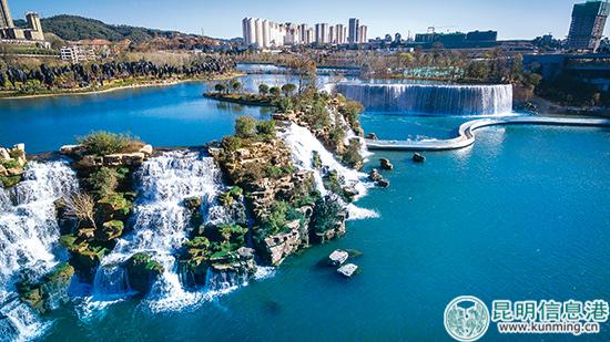 牛欄江-滇池補(bǔ)水工程盤(pán)龍江入口段已打造成為一個(gè)瀑布公園。 資料圖