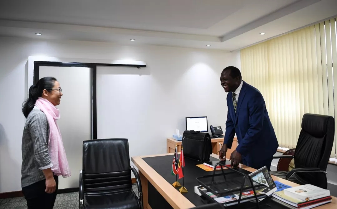 在肯尼亞內(nèi)羅畢的朱比利黨總部,許晶(左)與圖朱在溝通課程時(shí)間。新華社記者 李琰攝