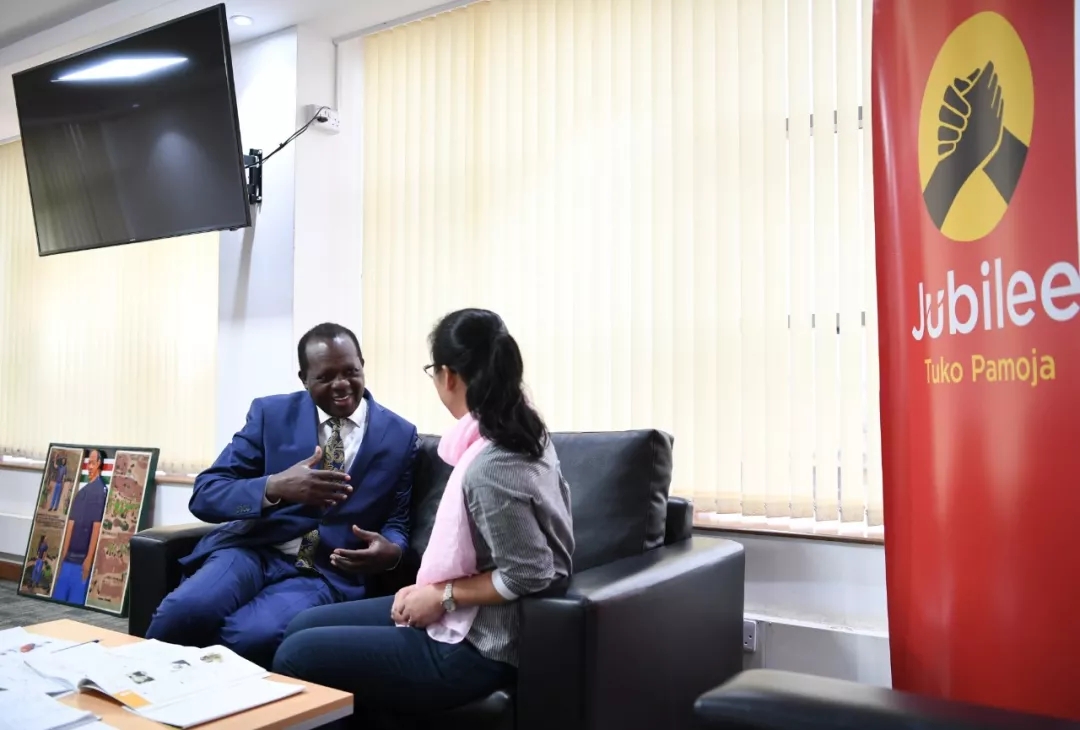 一個(gè)周五的上午,中國老師許晶正在給肯尼亞學(xué)生拉斐爾·圖朱上“一對(duì)一”的中文課。這位西裝筆挺、氣場(chǎng)十足、認(rèn)真聽講的學(xué)生來頭可不小,他是肯尼亞執(zhí)政黨朱比利黨的總書記。