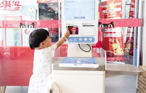 在杭州夢想小鎮(zhèn)天貓小店,小朋友嘗試掃碼自助支付,他們將是和新零售共同成長的一代。本報記者陳靜/攝