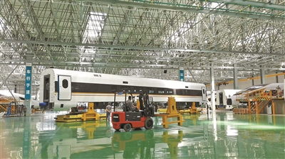 在中國(guó)中車(chē)寧波產(chǎn)業(yè)基地,高鐵列車(chē)正在生產(chǎn)中。