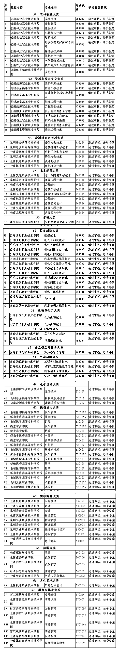 通過審核給予備案的云南省高等職業(yè)教育高水平骨干專業(yè)名單