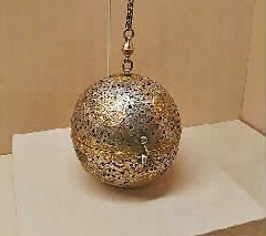 法門寺地宮出土的鎏金雙蜂團(tuán)花紋鏤空銀香囊 光明日?qǐng)?bào)記者李韻/攝