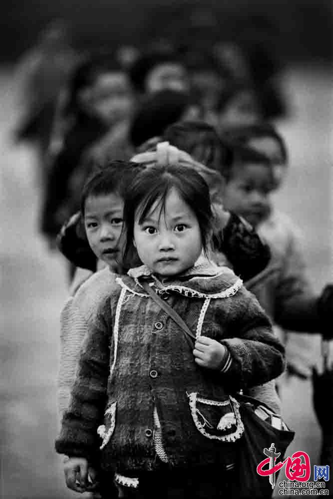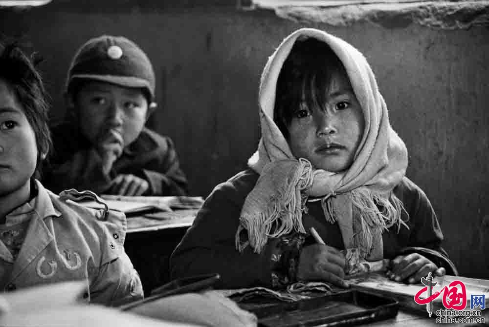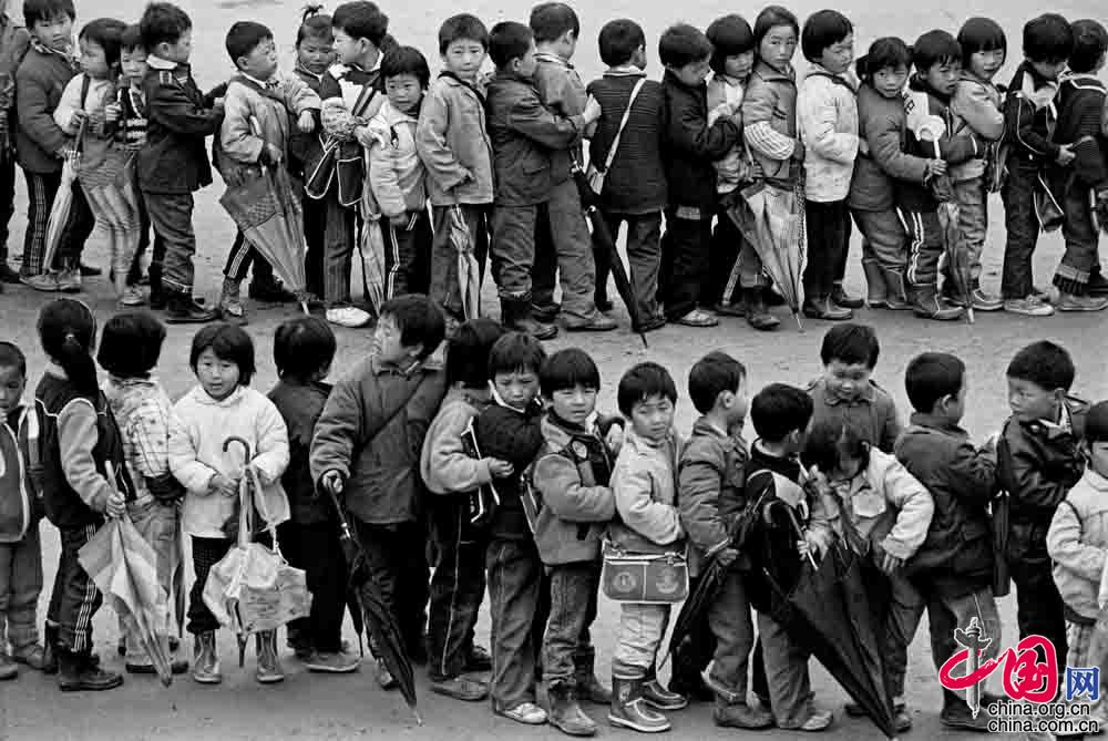 1993年12月, 河北省平山縣西柏坡鎮(zhèn)西坡小學(xué), 孩子們冒著嚴(yán)寒堅(jiān)持到學(xué)校上課。