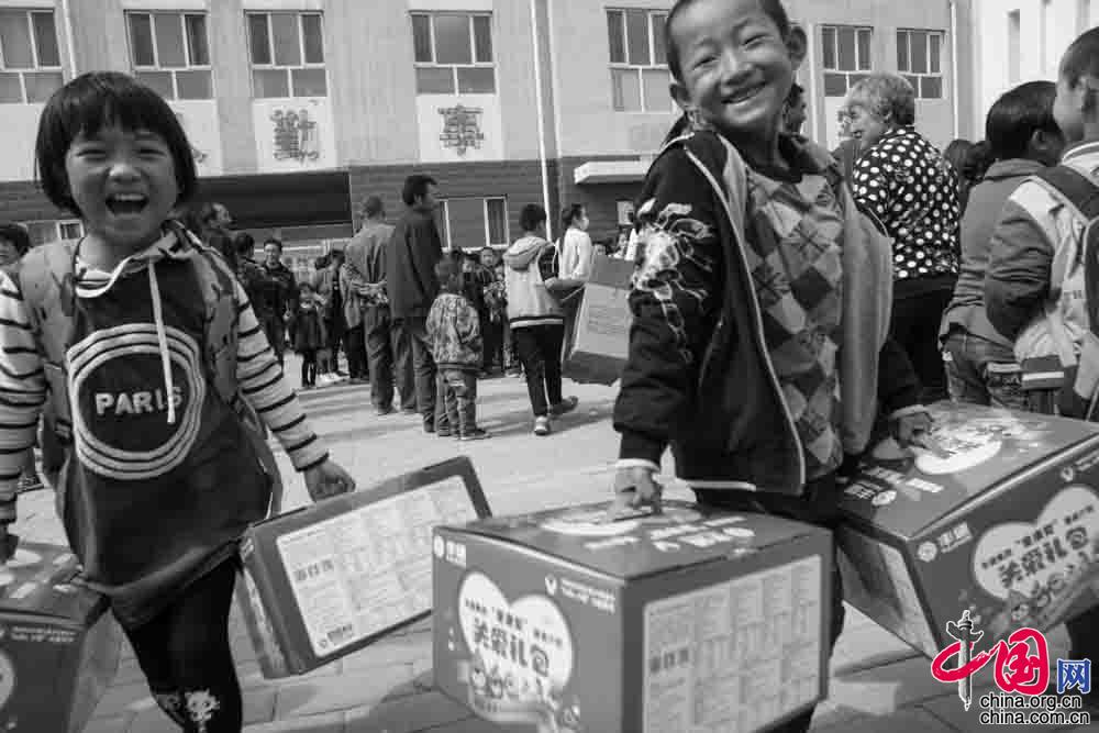 2017年5月,河北省淶源縣東團(tuán)堡中心學(xué)校,六一節(jié)來(lái)臨之際,孩子們收到了社會(huì)各界送來(lái)的禮物。