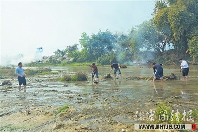 干部職工清理芒市大河。(楊幫慶攝)