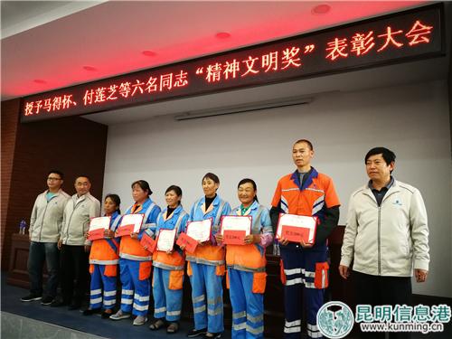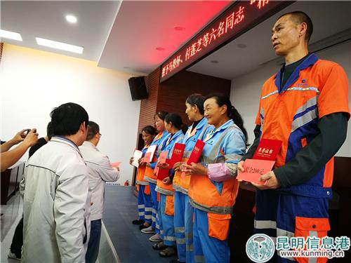 昆明信息港訊 記者勞學(xué)麗 今年六月底,昆明兩名環(huán)衛(wèi)工人在路旁為一位臨盆孕婦接生的新聞,曾被各大媒體爭(zhēng)相報(bào)道,大家都紛紛為兩名環(huán)衛(wèi)工人助人為樂(lè)的行為點(diǎn)贊。在這群樸實(shí)的環(huán)衛(wèi)工人中,還有很多這樣值得贊揚(yáng)的人和事。9月12日,云南京環(huán)盤宸環(huán)境資源管理有限公司召開(kāi)表彰大會(huì),授予包括助產(chǎn)環(huán)衛(wèi)工李美瓊、黃多榮在內(nèi)的6名環(huán)衛(wèi)工人“精神文明獎(jiǎng)”。