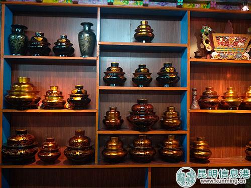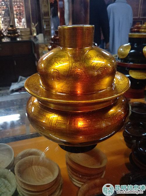 昆明信息港訊 實習(xí)記者黃彩英 9月11日,記者跟隨媒體采訪組走進德欽縣奔子欄殘疾人手工藝木制品廠房,一個大金黃色的糌粑盒映入眼簾,格外醒目,穿過長廊,便到陳列室,“吱”的一聲,門打開了,室內(nèi)眾多精美工藝品得以面世,大小不一,泛著亮光。