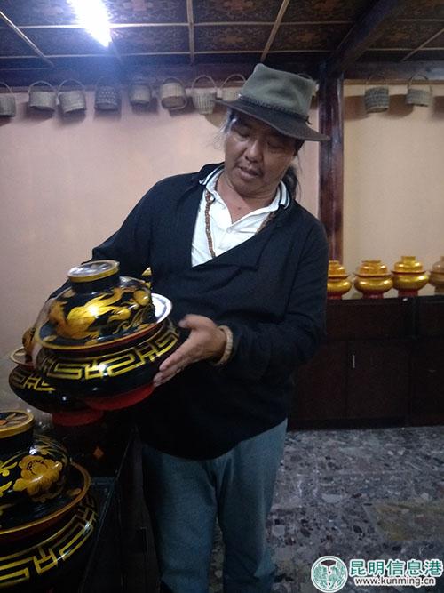 奔子欄的工藝品分傳統(tǒng)植物漆作品和化學(xué)漆作品。以植物漆制作的工藝品,從加工到上市需要20道工序和80余天時間,期間每天都需要對制作工藝品進行描繪再放到銀器里;化學(xué)漆制作的工藝只有10道工序,不過兩者的價格卻相差十倍不止。除了制作工藝外,工藝品的種類、大小、材質(zhì)和材質(zhì)位置不一樣,價格差距也是從幾十元到幾萬不等。