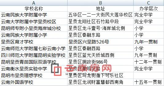 呈貢區(qū)民辦中小學名單
