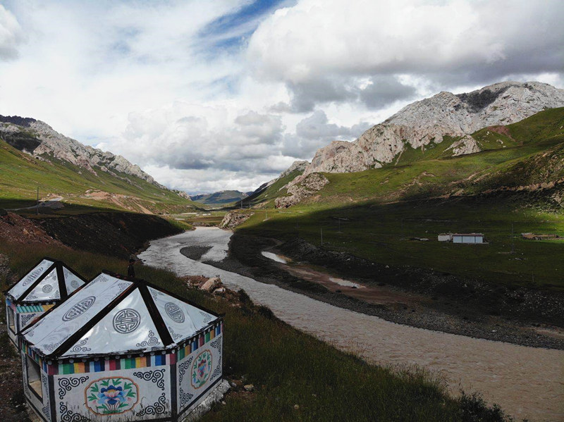 “彩色帳篷”——垃圾轉(zhuǎn)運(yùn)站,與三江源美景相映成趣。人民網(wǎng)記者余璐/攝