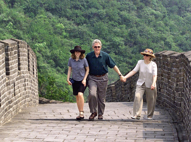 1998年6月28日,美國(guó)時(shí)任總統(tǒng)克林頓與夫人希拉里、女兒切爾西在北京游覽長(zhǎng)城。