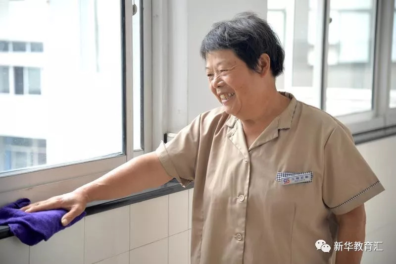 今年65歲的劉彩英阿姨已經(jīng)在清潔崗位上工作了11個(gè)年頭。上班時(shí),她拿著大排拖把拖走廊,教室一下課或者活動(dòng)一結(jié)束后,立刻檢查,然后掃地、拖地,工作按部就班,該打掃的區(qū)域認(rèn)真打掃,看到其他工友需要幫忙,經(jīng)常搭把手。她笑著說,自己工作掙錢,花自己的錢踏實(shí)。如果拿別人的錢,肯定良心不安。是到了享福的年齡,但自己掙錢自己花,活得舒心,每年還能給孫子壓歲錢呢!吃這碗飯,就要弄得好,對(duì)得起別人給的工資......