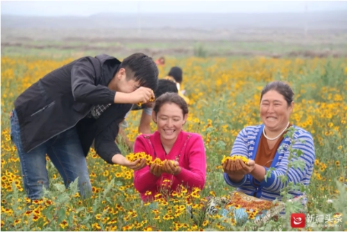一進(jìn)烏魯木齊市達(dá)坂城區(qū)西溝鄉(xiāng),遍地金燦燦的高寒雪菊綻放的“笑顏”就吸引了游客,輕輕折下一朵雪菊,別在耳后,咔嚓一聲,用手機(jī)記錄下來?!澳憧次艺撕枚嘌┚?帶回家自己晾曬,泡茶做湯都很好?!备拭C游客毛女士感慨道,這里既能自己動手參與雪菊的采摘,還能看到這么美的秋季風(fēng)景,真是不虛此行。烏魯木齊市達(dá)坂城區(qū)第六屆雪菊文化旅游節(jié)暨美食節(jié)剛剛落下帷幕,近3000畝綻放的雪菊成為游客旅途中一抹驚艷的回憶。