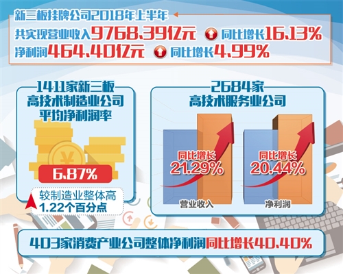 日前,新三板市場10686家掛牌公司披露了2018年半年報,剔除已提交終止掛牌申請和強(qiáng)制摘牌公司,按期披露率98.51%。半年報顯示,高技術(shù)制造業(yè)堅持自主創(chuàng)新提升產(chǎn)業(yè)價值鏈,高技術(shù)服務(wù)業(yè)持續(xù)推動產(chǎn)業(yè)結(jié)構(gòu)升級,消費產(chǎn)業(yè)新業(yè)態(tài)新模式加快發(fā)展,均表明我國中小民營經(jīng)濟(jì)體活力增強(qiáng)。