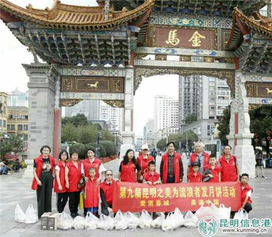 昆明信息港訊 他們來自全國各地,他們生活在城市的最底層,他們睡在馬路邊、屋檐下,他們也想過一個能吃上月餅的中秋節(jié)。16日中午,昆明之美顧中國、李厚基、艾慶瑋、李俊萍、艾宣睿、宋思榮等10多名志愿者走上街頭,為流浪者發(fā)月餅,送上昆明這座城市最溫暖的親情。