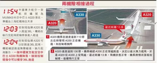 2016年10月11日下午12點(diǎn)03分,航班號(hào)為MU5643的東航A320型飛機(jī)在虹橋機(jī)場(chǎng)滑跑起飛過(guò)程中,由于管制原因,導(dǎo)致另一架A330飛機(jī)同時(shí)穿越跑道。眼看兩機(jī)就要相撞,千鈞一發(fā)之刻,機(jī)長(zhǎng)果斷決策、快速拉升起飛,保證了兩架飛機(jī)和四百多名旅客的生命財(cái)產(chǎn)安全。