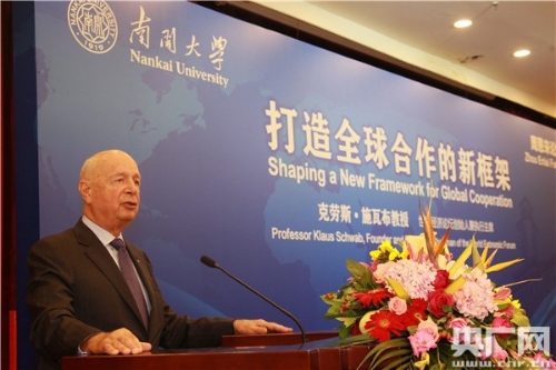 9月18日,世界經(jīng)濟(jì)論壇創(chuàng)始人兼執(zhí)行主席、南開大學(xué)名譽(yù)博士克勞斯·施瓦布教授做客南開大學(xué)周恩來論壇,并發(fā)表“打造全球合作的新框架”主題演講。