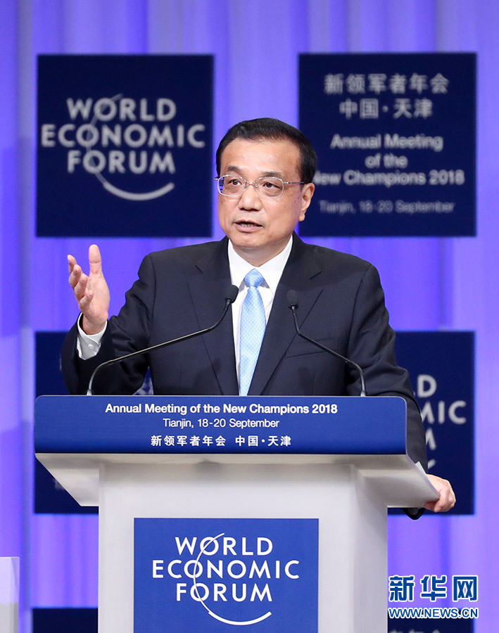 9月19日,國(guó)務(wù)院總理李克強(qiáng)在天津梅江會(huì)展中心出席2018年夏季達(dá)沃斯論壇開幕式并發(fā)表特別致辭。 新華社記者 丁海濤 攝