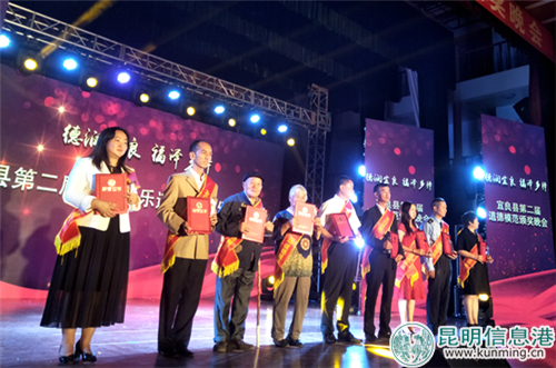 昆明信息港訊 記者栗飛 9月20日晚,宜良縣第二屆道德模范頒獎晚會在宜良會堂舉行。來自宜良基層的44名“無名英雄”獲表彰,成為全縣43萬各族人民的學(xué)習(xí)楷模。