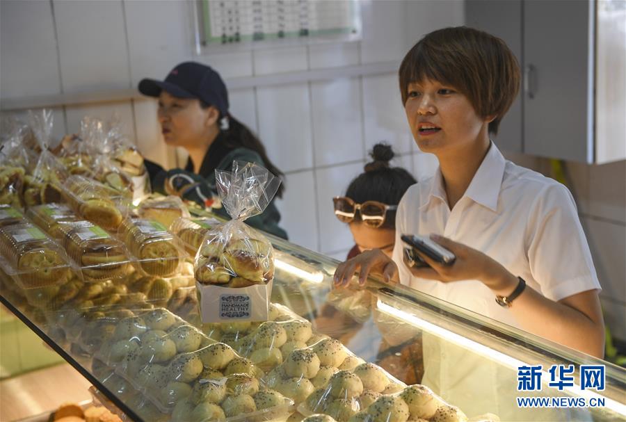 9月20日,顧客在新疆伊寧市實大實點心店里選購。新華社記者馬鍇攝