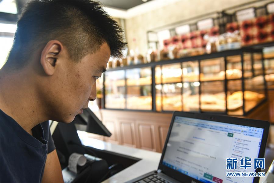 9月20日,新疆伊寧市實大實點心店老板馬川在網(wǎng)上查詢QS食品認證申請流程。新華社記者馬鍇攝