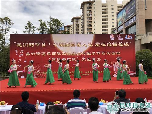 昆明信息港訊 記者龍泉積 9月20日,中秋將至,官渡區(qū)矣六街道花田社區(qū)舉辦“我們的節(jié)日·中秋團圓暖人心·愛在俊?;ǔ恰な讓梦幕囆g(shù)節(jié)——建設(shè)者之歌文藝演出。據(jù)介紹,此次活動旨在加強居民與轄區(qū)公共單位互通共融,促進居民之間心與心的交流,提升社區(qū)居民“主人翁”意識,把社區(qū)建設(shè)成為文明、和諧、美麗社區(qū)共奮進。