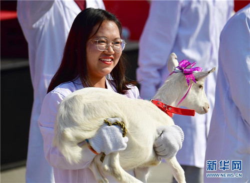 9月23日,“奶山羊代表隊”亮相首屆中國農(nóng)民豐收節(jié)陜西楊凌分會場活動。新華社記者 邵瑞/攝