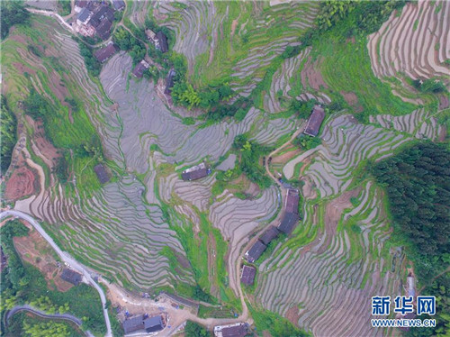 這是位于湖南省婁底市新化縣的紫鵲界梯田(5月23日無人機(jī)拍攝)。新華社發(fā)(薛宇舸/攝)