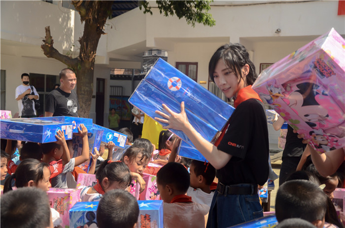 近日,蘇詩丁現(xiàn)身廣西參加“2018MusicRadio我要上學”的愛心公益活動。活動中,蘇詩丁化身愛心大使,跟隨探訪隊伍走進廣西陽朔紅蓮小學,深入探訪留守兒童學習狀況。抵達到學校后,學生們?yōu)樗麄兣e辦了簡單樸素的歡迎儀式,蘇詩丁還為當?shù)貙W生派發(fā)了愛心文具,將愛心人士的滿滿心意送至每一個學生身邊。