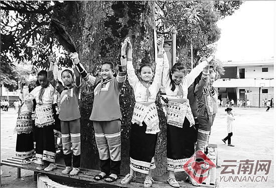 最近,記者到金平苗族瑤族傣族自治縣采訪時,發(fā)現(xiàn)該縣者米拉祜族鄉(xiāng)者米小學校園里有幾棵百年芒果樹,芒果成熟時,每棵樹能結(jié)果一噸多,果實掉到地下時,學生們就可在校園內(nèi)撿食芒果,其樂融融。該校教齡34年的謝明芬老師介紹:1996年小學搬到此處時,校園里就有芒果樹了,原來有4棵,2010年新建一幢教學樓的時候,因為施工泥漿等影響死了一棵。老師們說,原來學校只有300多名學生,芒果樹的枝干覆蓋了幾乎整個校園,雖然者米天氣炎熱,但全校師生在樹下都感覺很涼爽。雖然對3棵大芒果樹進行了封頂修枝,但每棵樹每年仍會結(jié)出大量芒果,成為了校園獨特一景。(春城晚報 記者任銳剛 實習生龔娜 白翠梅 攝影報道)