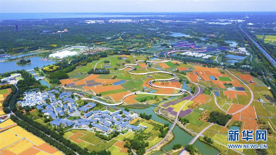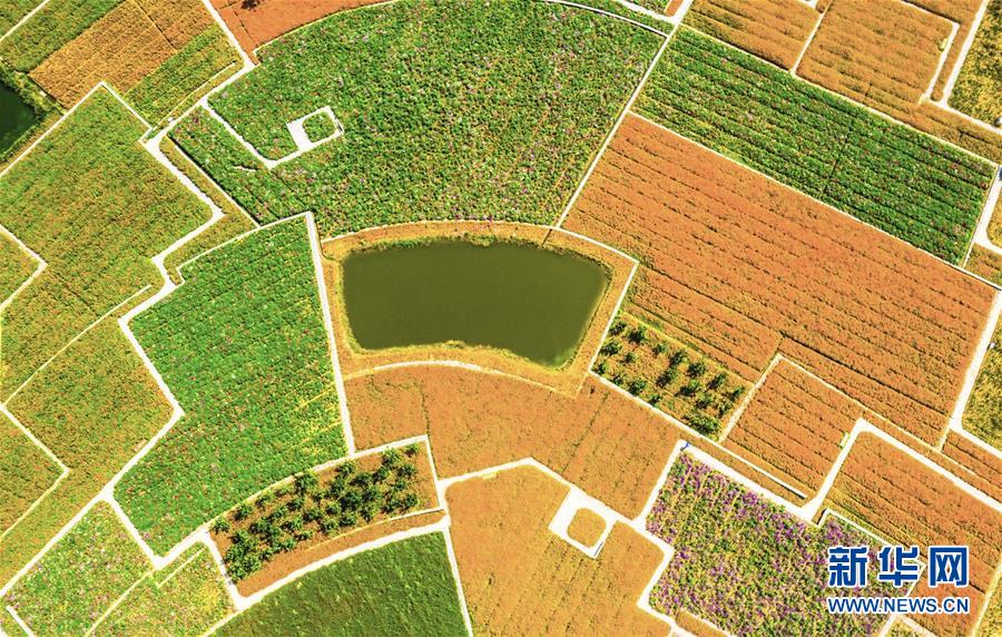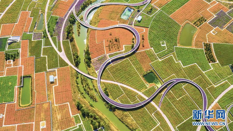 這是9月25日在江蘇省宿遷市三臺山森林公園拍攝的衲田花海美景(無人機拍攝)。 近日,江蘇省宿遷市三臺山森林公園衲田花海的2000余畝秋季鮮花進入盛花期,硫華菊、波斯菊等20余種花卉競相綻放。 (新華社 記者張連華)