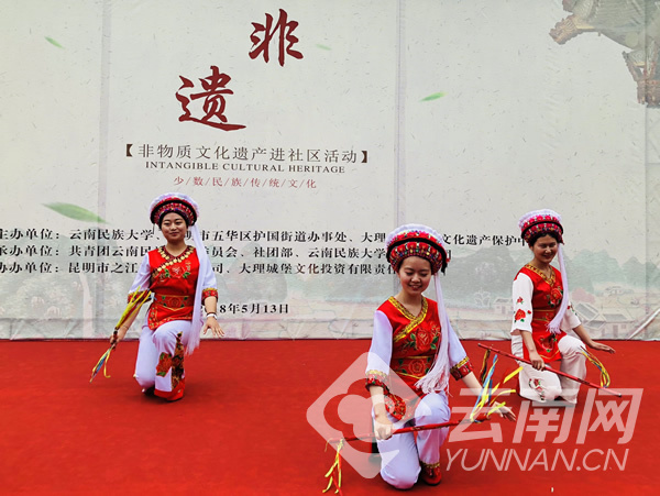 5月13日,由共青團(tuán)云南民族大學(xué)委員會(huì)、大理州非物質(zhì)文化遺產(chǎn)保護(hù)中心主辦的非物質(zhì)文化遺產(chǎn)進(jìn)社區(qū)活動(dòng)在昆明老街舉辦。
