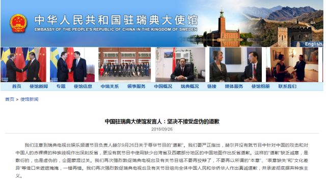 我們注意到瑞典電視臺(tái)娛樂(lè)頻道節(jié)目負(fù)責(zé)人赫爾9月26日關(guān)于辱華節(jié)目的“道歉”。我們要嚴(yán)正指出,赫爾并沒(méi)有就節(jié)目中針對(duì)中國(guó)的攻擊和對(duì)中國(guó)人的赤裸裸的種族歧視作出深刻反省,更沒(méi)有就節(jié)目中使用缺少臺(tái)灣地區(qū)及西藏部分地區(qū)的中國(guó)地圖作出反省道歉。這樣的“道歉”缺乏誠(chéng)意,是敷衍的,也是虛偽的,企圖蒙混過(guò)關(guān)。我們?cè)俅螐?qiáng)烈敦促瑞典電視臺(tái)及有關(guān)節(jié)目組不要再狡辯了,不要再以所謂的“本意”、“表意缺失”和“文化差異”等借口來(lái)遮遮掩掩,一錯(cuò)再錯(cuò)。我們?cè)俅螐?qiáng)烈敦促瑞典電視臺(tái)及有關(guān)節(jié)目組向全體中國(guó)人民和華僑華人作出真誠(chéng)道歉,并承諾徹底摒棄種族主義。