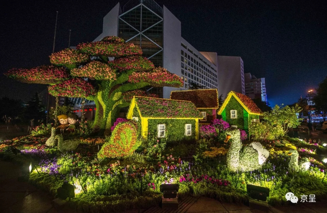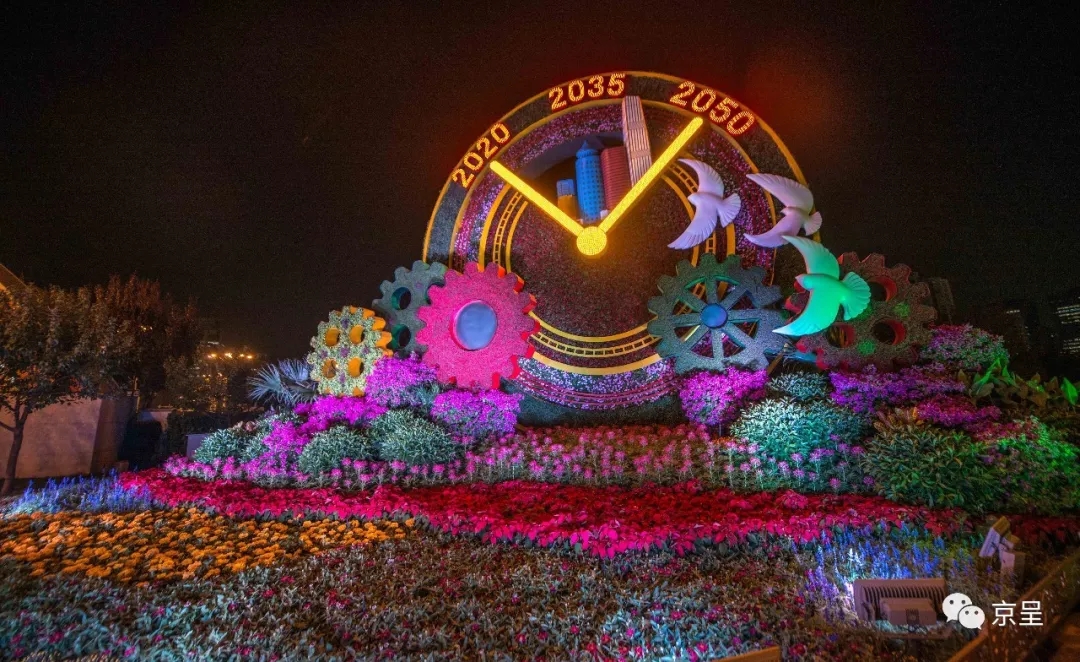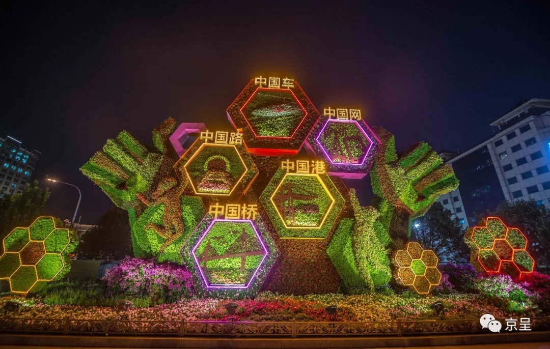 “輝煌中國(guó)”主題花壇,通過(guò)重大工程的建設(shè)成就(中國(guó)橋、中國(guó)路、中國(guó)車、中國(guó)港、中國(guó)網(wǎng)),謳歌了偉大祖國(guó)從站起來(lái)、富起來(lái)到強(qiáng)起來(lái)的偉大飛躍,展現(xiàn)輝煌中國(guó)新時(shí)代新風(fēng)貌。