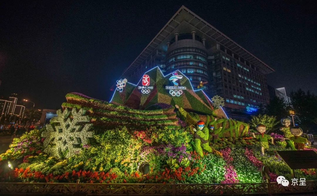 西長(zhǎng)安街通過(guò)“智慧生活”、“幸福生活”、“綠色生活”、“健康生活”、“美好明天”五個(gè)花壇,體現(xiàn)為人民謀幸福,共建共享美好生活的光明前景。