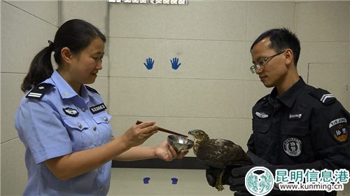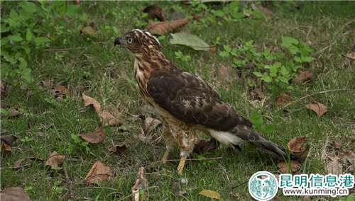昆明信息港訊 記者甘凌菲 通訊員田仁梅 趙選富 近日,一只被人非法訓(xùn)養(yǎng)的猛禽飛入文山市公安局大院內(nèi),不慎撞上玻璃墜落到草坪上,被值班人員發(fā)現(xiàn)救助,并送交森林公安機關(guān)放飛大自然。