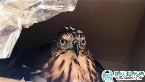 9月25日下午9點左右,正在公安局值班的工作人員看到一只鳥向辦公室玻璃撞上去,便急忙上前查看,發(fā)現(xiàn)鳥已昏倒在玻璃外的草坪上無法動彈,當即脫下衣服將鳥包住,放進紙箱里。第二天早上下班后,工作人員將鳥交給在螺蜂農(nóng)貿(mào)市場賣菜的父親,讓父親聯(lián)系州森林公安局。