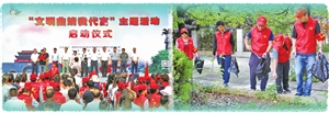 開展主題宣傳活動 志愿者在撿拾垃圾