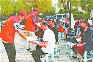 志愿者向市民發(fā)放創(chuàng)文宣傳資料