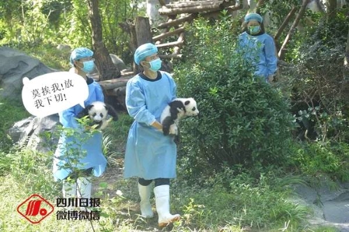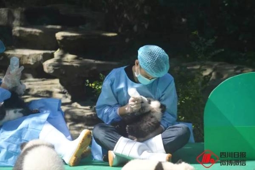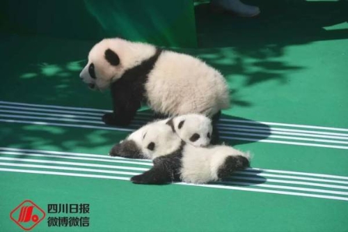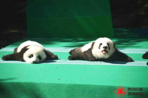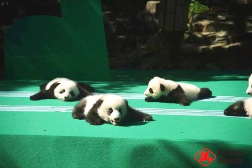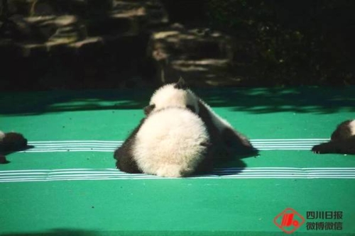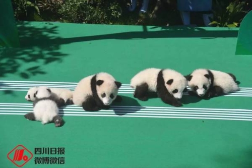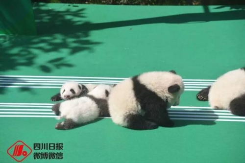 一只只熊貓寶寶像漏了陷的芝麻湯圓一樣,