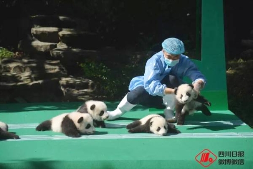 9月28日,成都大熊貓繁育研究基地(以下簡稱“成都熊貓基地”)為今年出生的12只新生大熊貓舉行了一場別開生面的亮相活動。