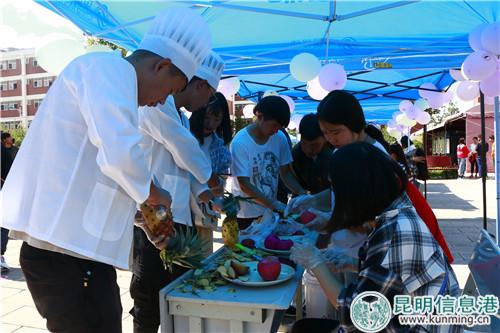 昆明信息港訊 記者合宇聰 9月27日,“云南經(jīng)濟(jì)管理學(xué)院首屆校園美食文化節(jié)”在安寧校區(qū)舉行。校方師生一展烹飪技藝,與數(shù)十家校內(nèi)餐飲服務(wù)單位一同拿出“看家本領(lǐng)”,供師生免費(fèi)品嘗饕餮盛宴。