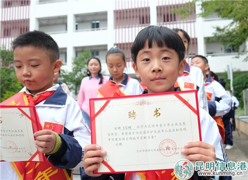 本次活動上,有11名優(yōu)秀小學生獲選成為昆明市2018年青少年公益志愿宣傳員。
